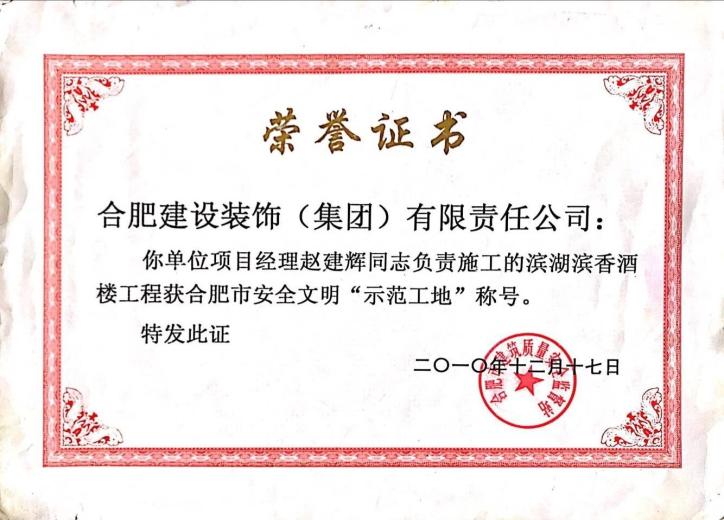 2010年合肥市安全文明示范工地--滨湖滨香酒楼工程