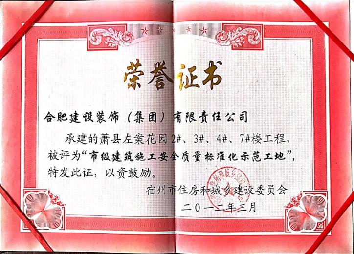 2012年市级建筑施工安全质量标准化示范工地--萧县左岸花园