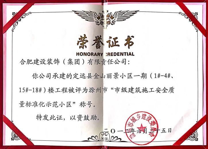 2012年市级建筑施工安全质量标准化示范工地--定远金山丽景小区