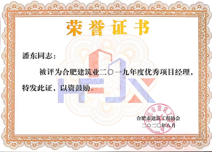 2020年安徽省建筑业企业优秀项目经理--杨善良