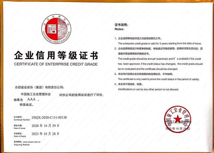 合肥金大地置业有限公司2020年度“优秀供应商”证书