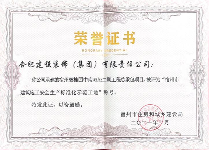宿州碧桂园中南双玺二期总承包工程--宿州市建筑安全生产标准化示范工地