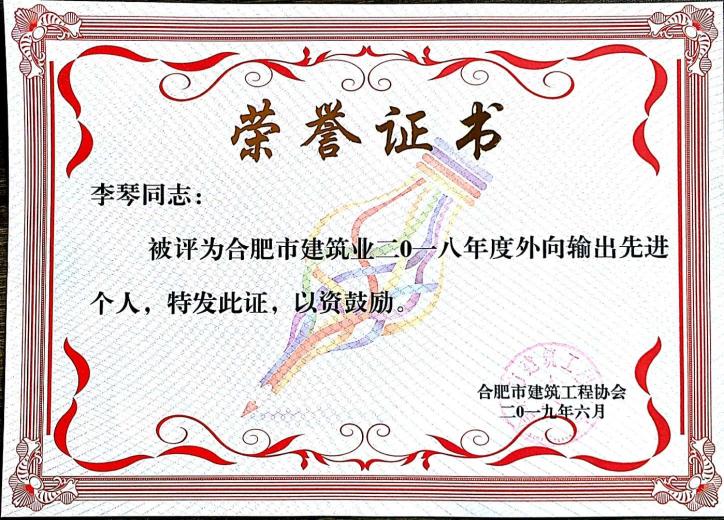 合肥市建筑业2018年度优秀项目经理——吴勇信