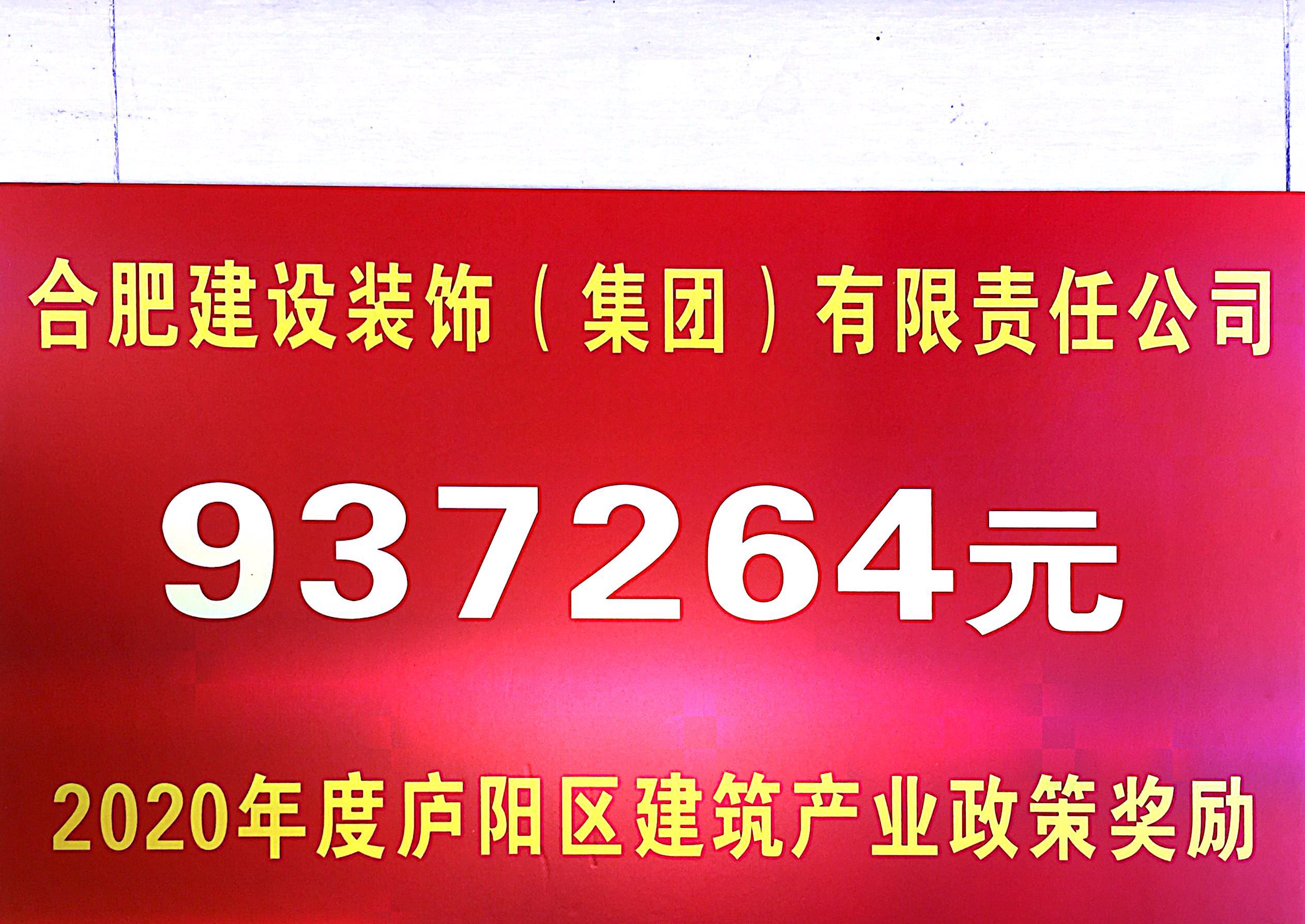 2020年度庐阳区建筑产业政策奖励937264元